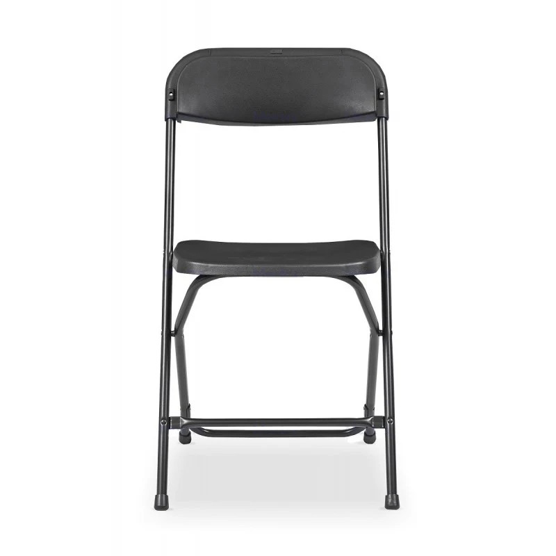 Fekete összecsukható konferencia szék. Tartós az ülés, a háttámla műanyagból készült. Kiválóan ellenállnak az időjárási viszonyoknak, beleértve a nedvességet és az UV-sugárzást is. A műanyag lábvégeknek köszönhetően kiküszöböli a zajt és védi a padlót a karcolódástól. Maximális terhelhetőség 120kg. A szék súlya: 3.3kg. Váz: 19mm széles, 1,2mm vastag. Ülőfelület: 40x40cm