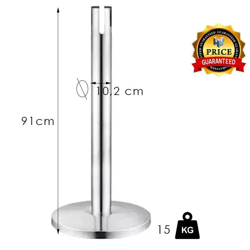 XXL méretű szalagos kordonoszlop, tükörpolírozott krómm szalagkazetta nélkül. Belehelyezhető 10 méteres szalagkazetta. Talp átmérő: 360mm, Oszlop magasság: 910mm Oszlop átmérő: 102mm Szalagkazetta: 10000mm. Szalag szélesség: 48 mm. Súly: 15kg